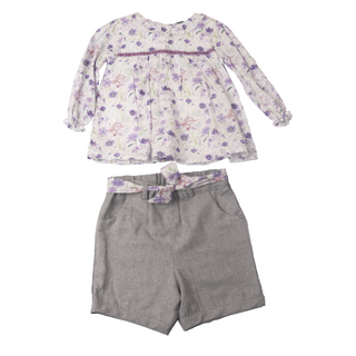 206112 Lila Çiçekli Dokuma 2 Li Takim