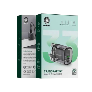xThe Green Lion 33WPD Transparent Wall Charger UK is a sleek and powerful charging solution. With 33W of power, it can quickly charge all your devices with ease. Its transparent design allows you to see the internal workings, adding a unique touch to your charging experience. Stay powered up and organized with the Green Lion charger.